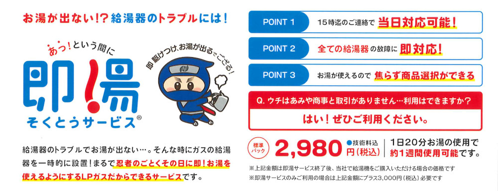 あみや商事の 『即湯サービス』 なら、