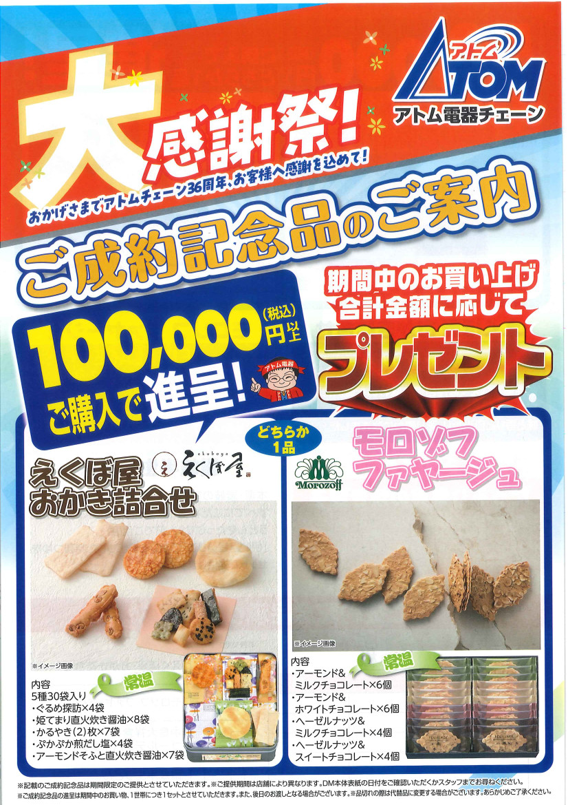 当店では日頃のご愛顧に感謝の気持ちを込めて「第59回 秋の大感謝祭 実りの秋 おトクがぎっしり!」を開催いたします。新製品を多数取り揃えて信頼とサービスをモットーに従業員一同心よりご奉仕致します。