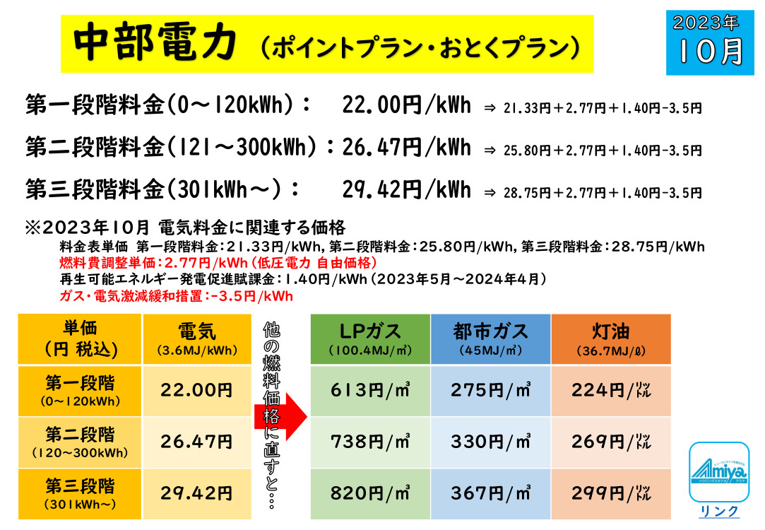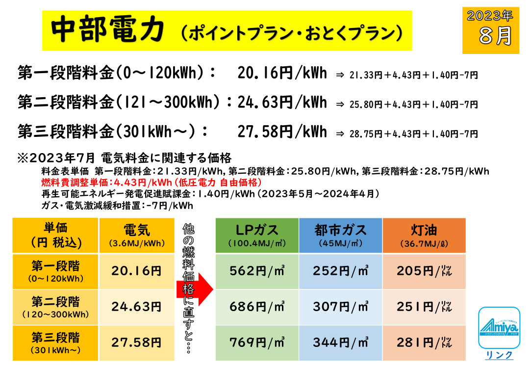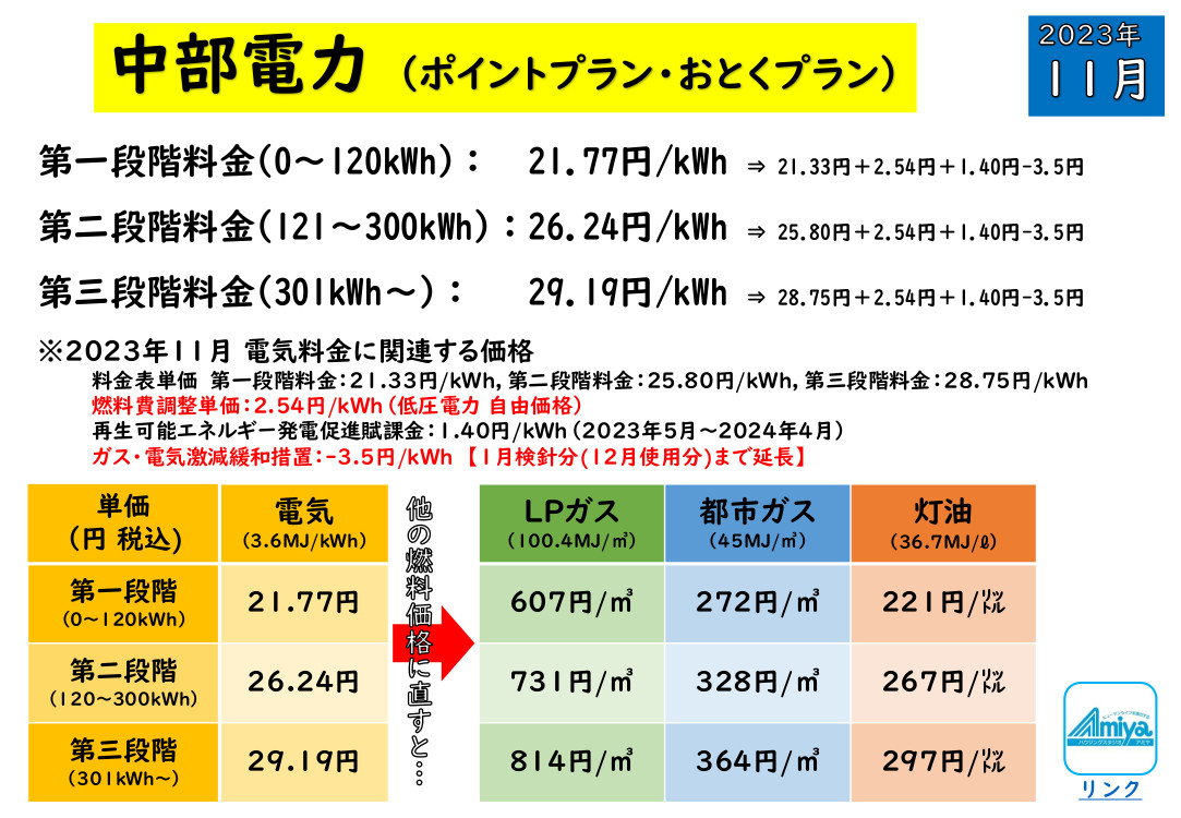 中部電力の従量電灯の価格でいえば、
